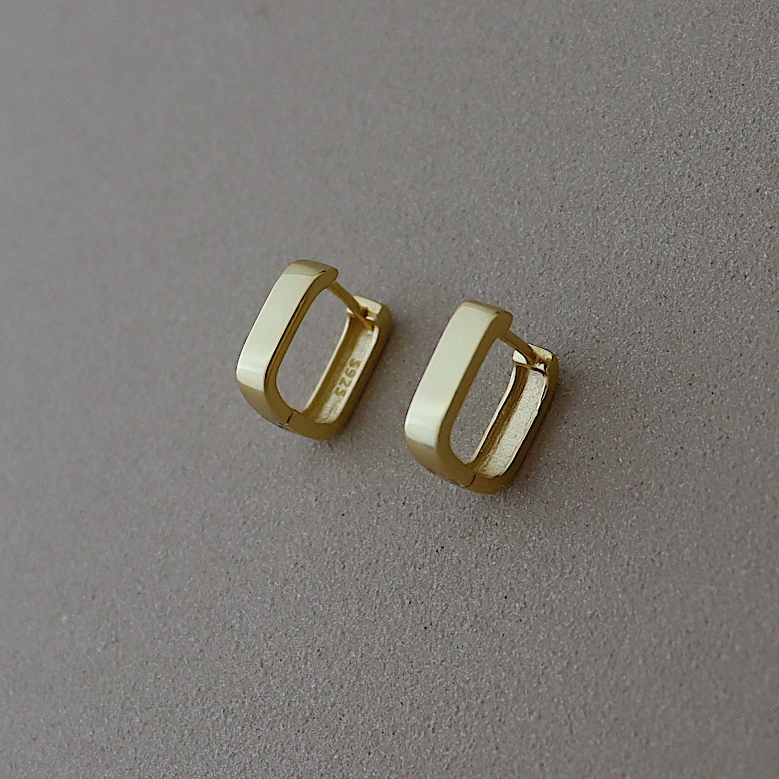 The Gold square huggie hoops are the perfect everyday earring, featuring a bold, square silhouette. These hoops can be worn individually for a minimalistic aesthetic or stacked and layered with other earrings for a chunkier, statement look.