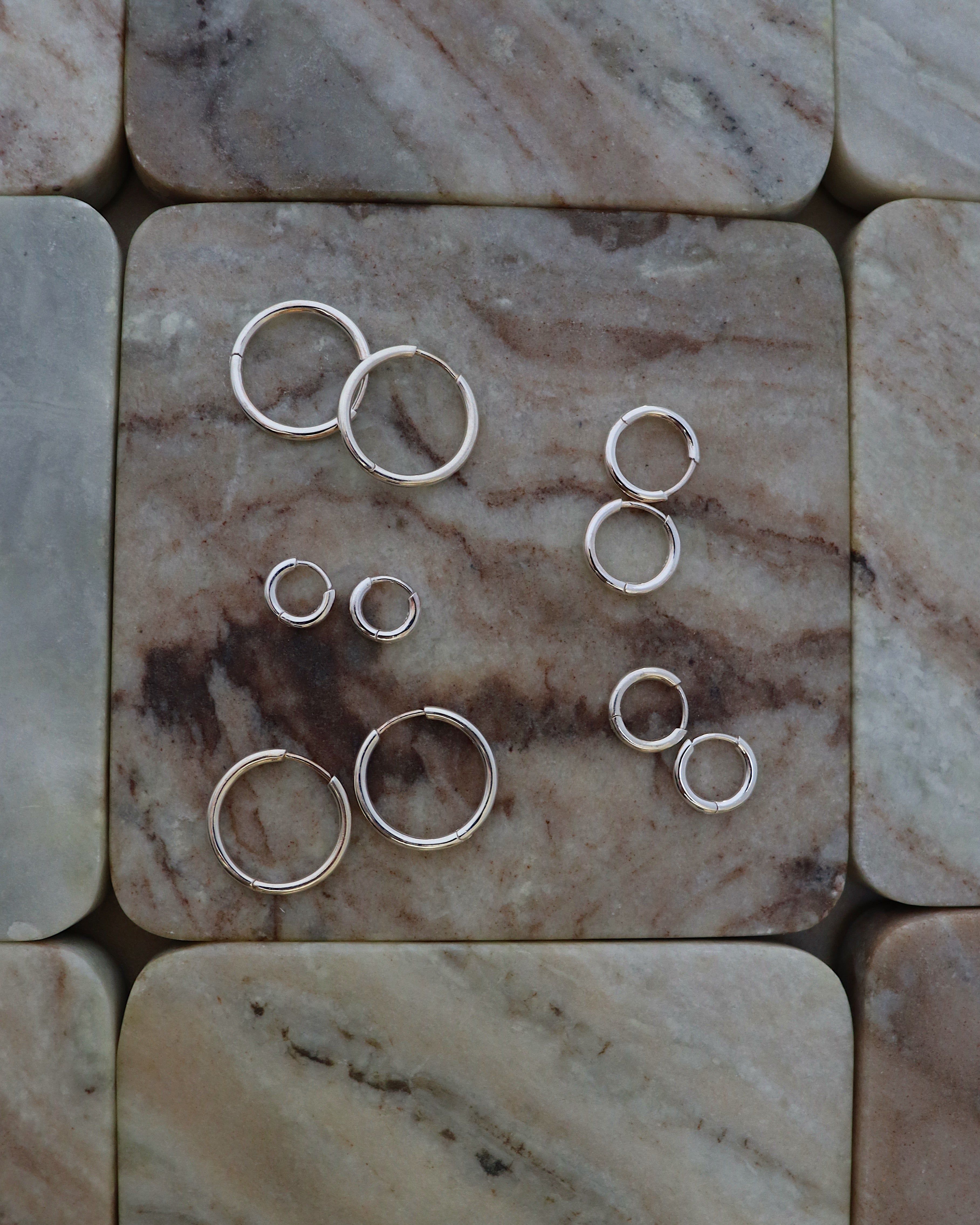 Our essential tube huggies are a must-have staple in every earring collection. Wear the staple tube huggies individually or create your own personal earring stack by layering alternate tube huggie sizes or other feature hoops from our collection.